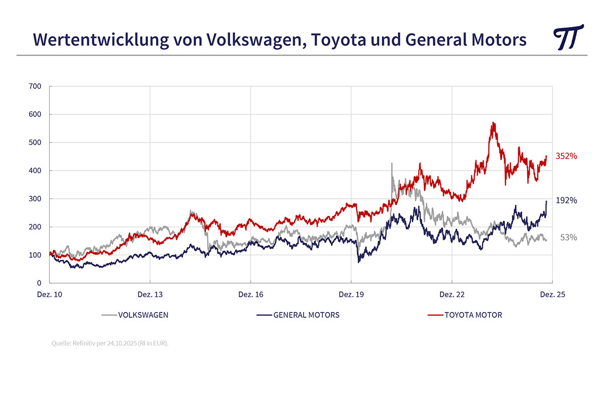 Gerne reden unsere Politiker von einer temporären konjunkturellen Abschwächung, die durch noch mehr Staatseinfluss überwunden werden muss. Dass es sich in Wirklichkeit um eine Strukturkrise handelt, zeigt ein Vergleich der drei absatzstärksten Autohersteller Volkswagen, General Motors und Toyota über die letzten 15 Jahre.