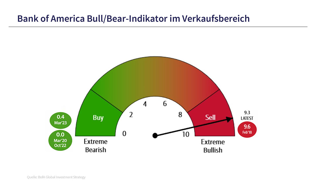 Die bisherigen Favoriten aus dem Technologiebereich zeigen erste Ermüdungserscheinungen. Selbst so solide Qualitätsaktien wie Microsoft oder SAP verlieren an einem Tag mehr als 10%. Der US-Dollar als Reservewährung gerät ins Wanken. Silber verzeichnet einen beispiellosen Kurssturz, nachdem das Edelmetall viele Jahre nicht beachtet wurde, in den letzten Monaten wegen bekannt gewordener Knappheit aber verstärkt im Mainstream angekommen ist. Der Bull/Bear-Indikator der Bank of America lag bis vor wenigen Tagen im knallroten Verkaufsbereich.