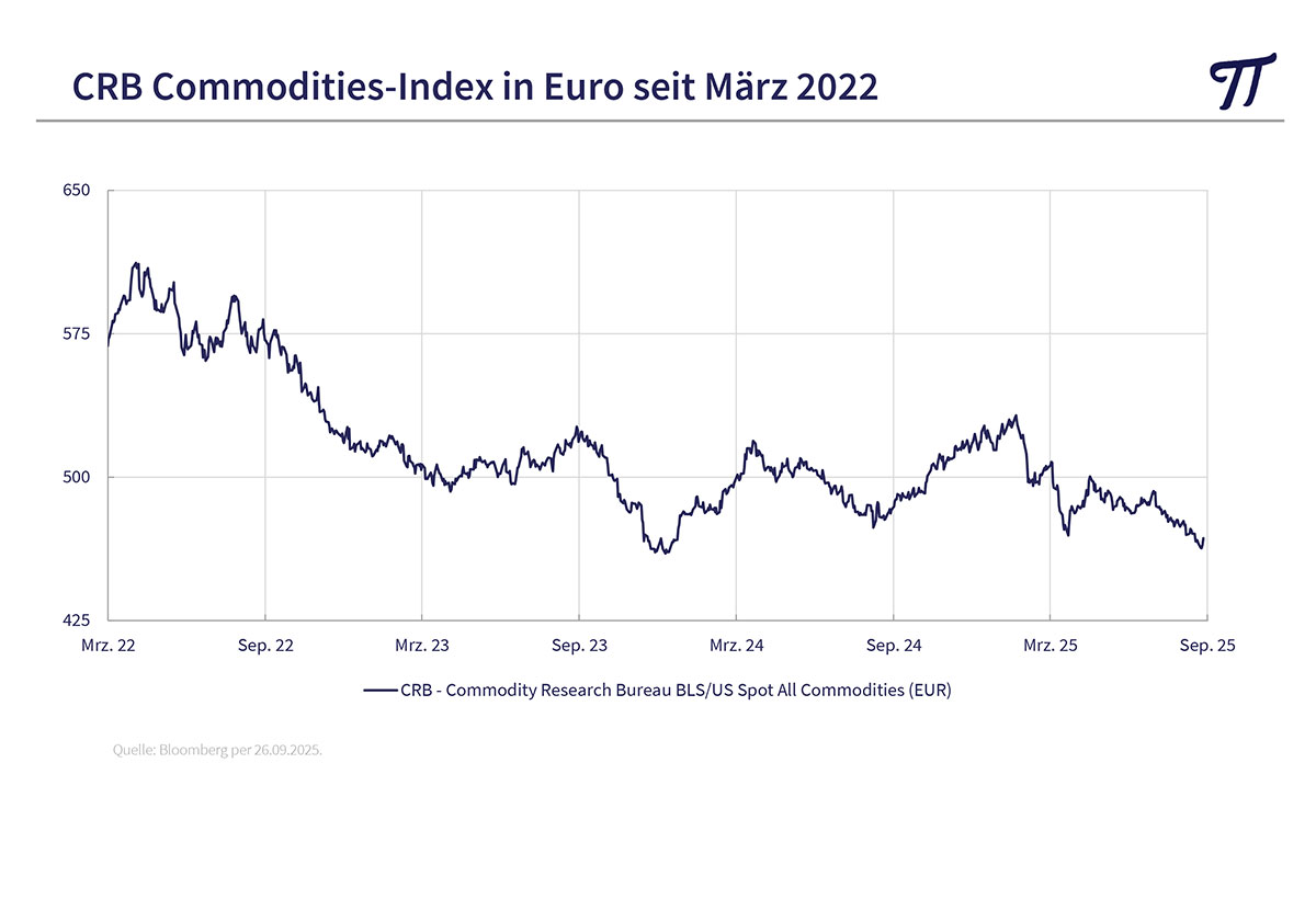 Diese enorme Untergewichtung von Commodities erstaunt, handelt es sich doch um Sachwerte (hard assets). Commodities sind ein Sammelbegriff für Energie (Öl und Gas), Edelmetalle (Gold und Silber), Industriemetalle wie Kupfer und Aluminium und Agrarrohstoffe. Sie sind z.B. im CRB-Index zusammengefasst.