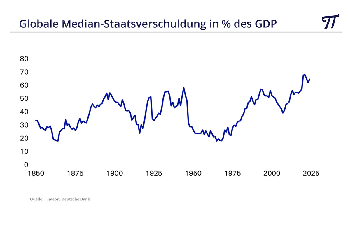 Dreh- und Angelpunkt unserer Überlegungen ist eine kommende Schuldenkrise. Weltweit ist der Schuldenberg allein seit Anfang des Jahrhunderts von ca. 80 auf deutlich über 300 Billionen $ gestiegen. Zur Erinnerung; 1 Billion entspricht 1000 Milliarden. Besonders hervorgetan hat sich dabei der öffentliche Sektor, wobei die globalen Schuldenexzesse der Staaten auch im Verhältnis zum Bruttosozialprodukt ein neues historisches Hoch erreicht haben.